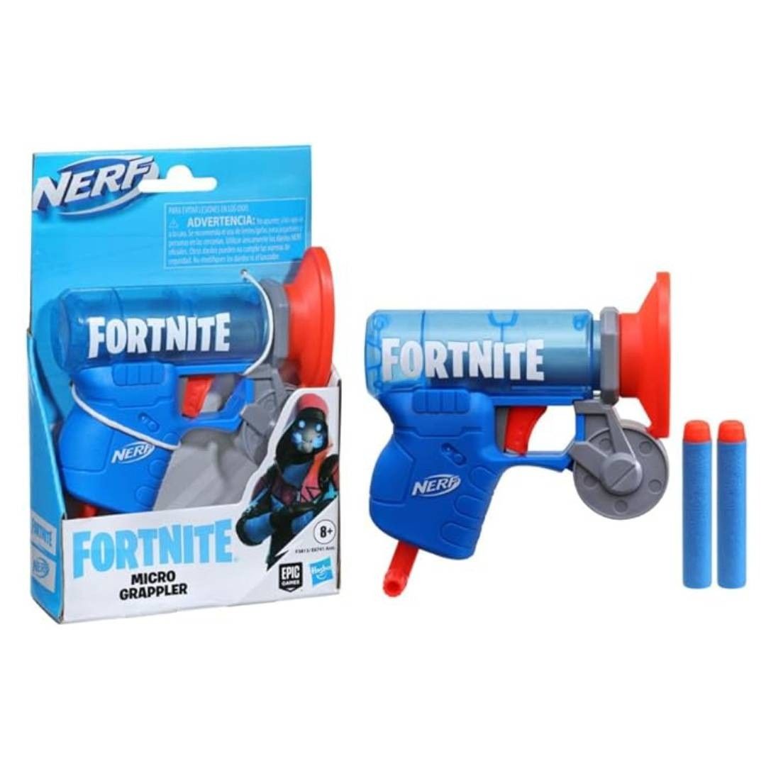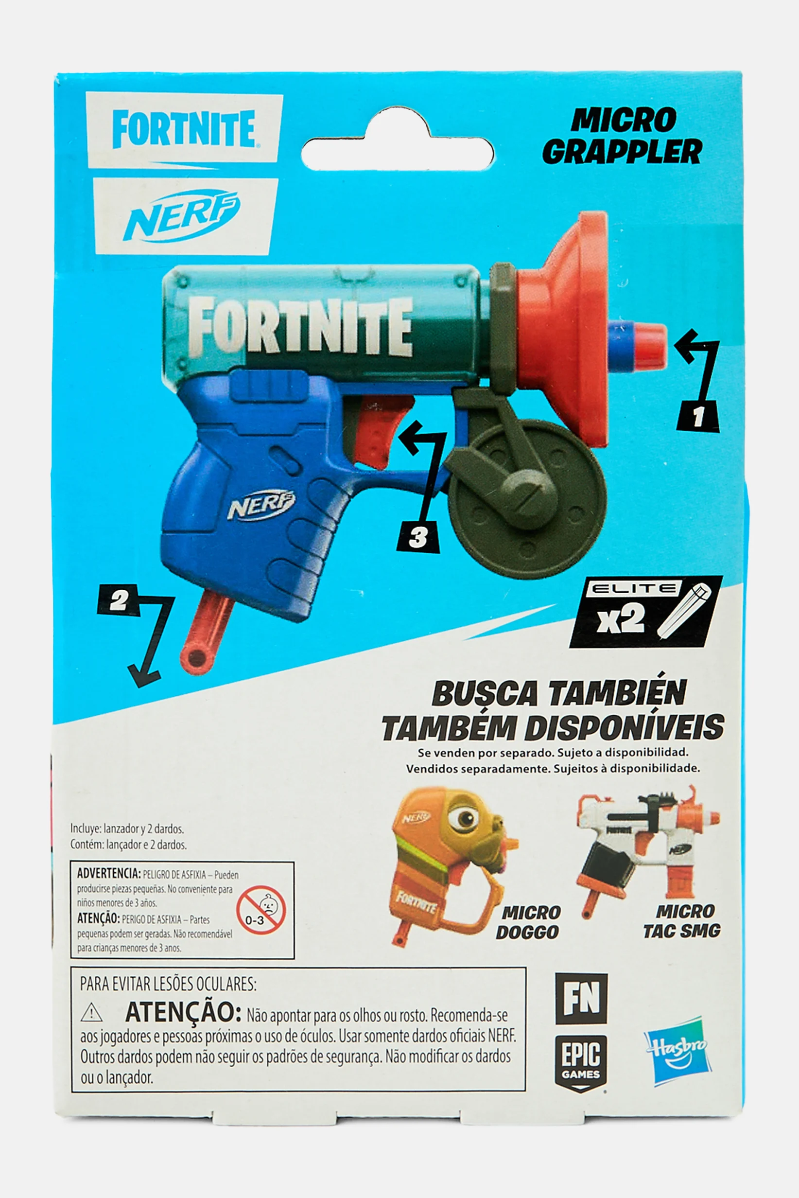 Blast into big fun with this mini-size Nerf MicroShots Fortnite Micro Grappler blaster that captures the look of the Grappler equipment from the popular video game. This miniature-sized Micro Grappler blaster is easy to carry and just right for indoor and outdoor battles. The micro style makes it a great addition to Nerf and Fortnite collections. This Nerf MicroShots Fortnite blaster holds 1 dart and is easy to use. Load a dart into the front of the blaster, pull down the priming handle, and press the trigger to fire. It’s a great gift for Fortnite fans and Nerf battlers! Includes 2 Official Nerf Elite foam darts that are tested and approved for performance and quality.