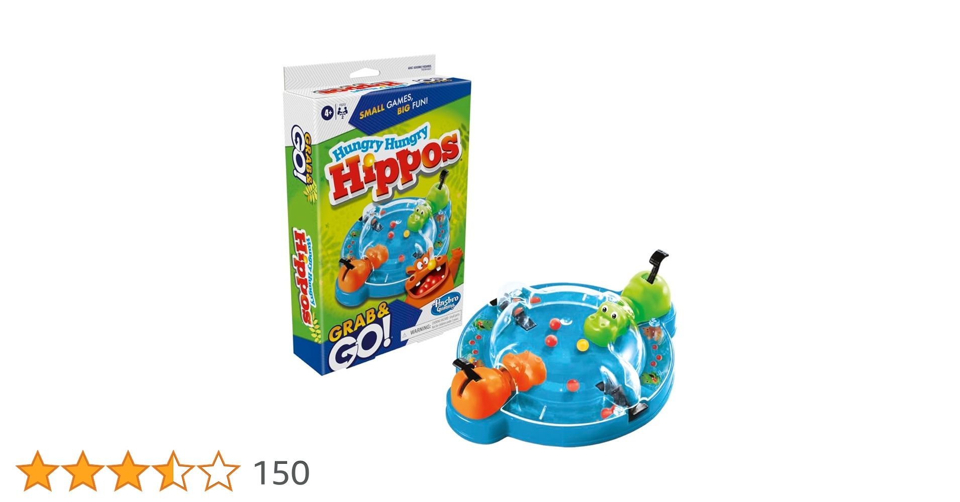 Hasbro Gaming брэндийн алдарт Hungry Hungry Hippo тоглоомын аян замд зориулсан жижиг хувилбар.