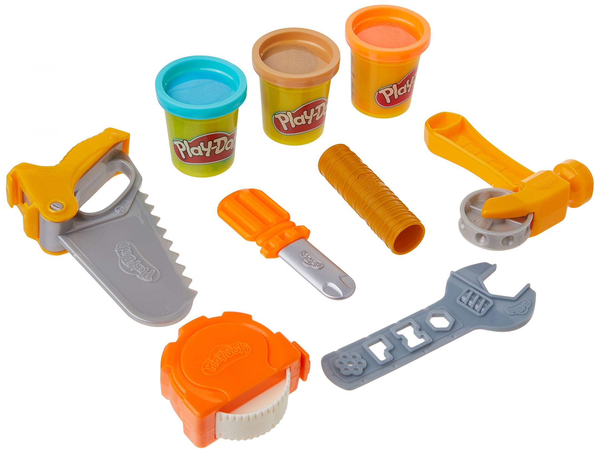 The Build and Shape Set has everything kids need to play pretend builder! Make a variety of shapes with the 16 cutters, squeeze silly shapes with the wrench and saw, and more. The Play-Doh kit comes with 20 fun tools, 8 Play-Doh cans, and 5 activity cards with 10 matching activities for kids. This arts and crafts set makes a great kids gift for girls and boys 3 years and up.