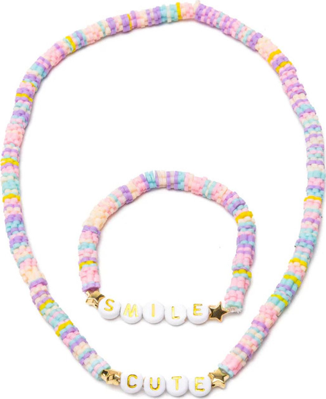 Introducing our Bauble Bliss Bracelet and Necklace Set – a delightful duo designed to add a touch of whimsy and charm to your little one's ensemble! This set features light pink beads that evoke a sense of sweetness and innocence, combined with multi-colored heart-shaped beads for a burst of playful joy.