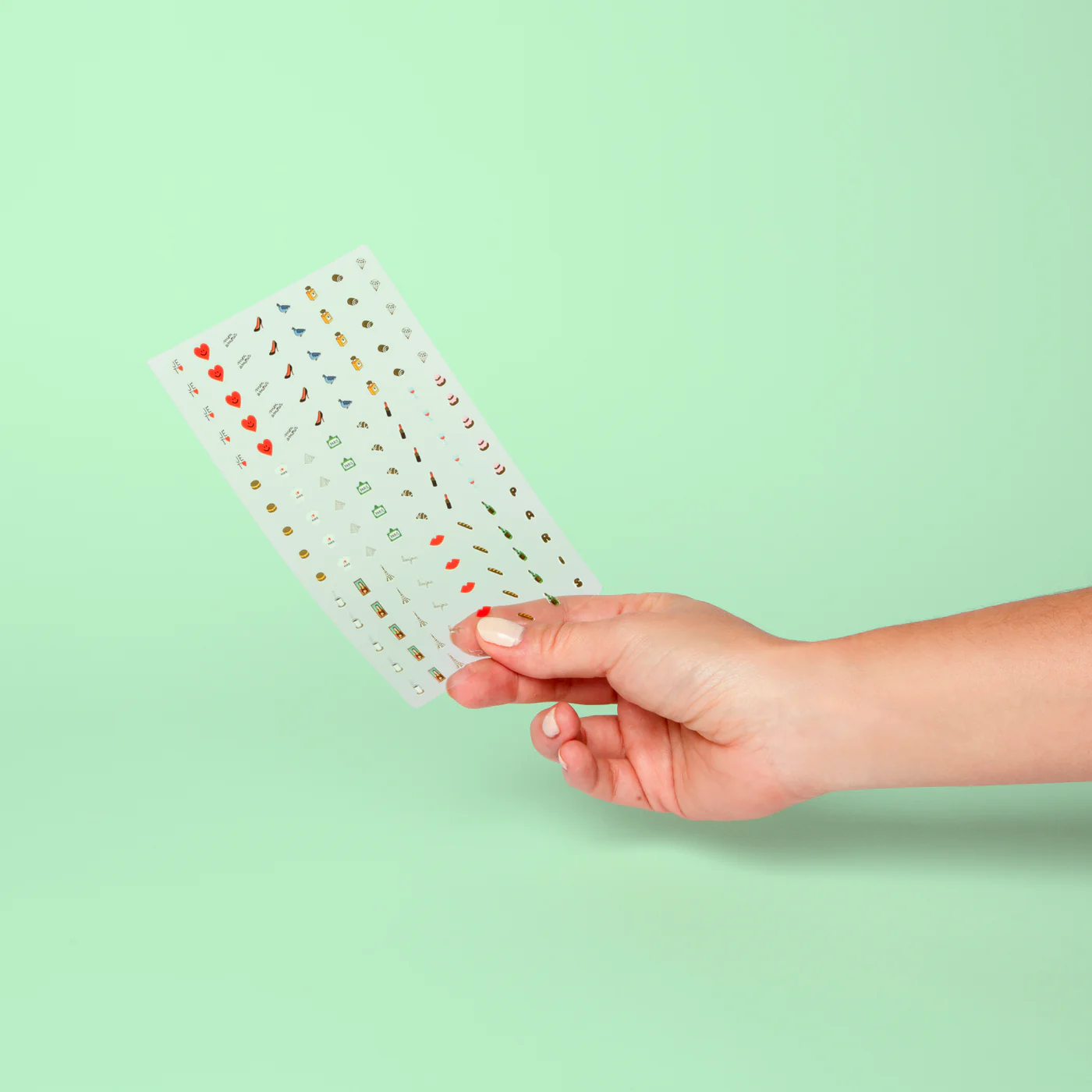 120 fun and fluorescent nail art stickers with iconic OMY designs to pimp any manicure, all in super stylish packaging !